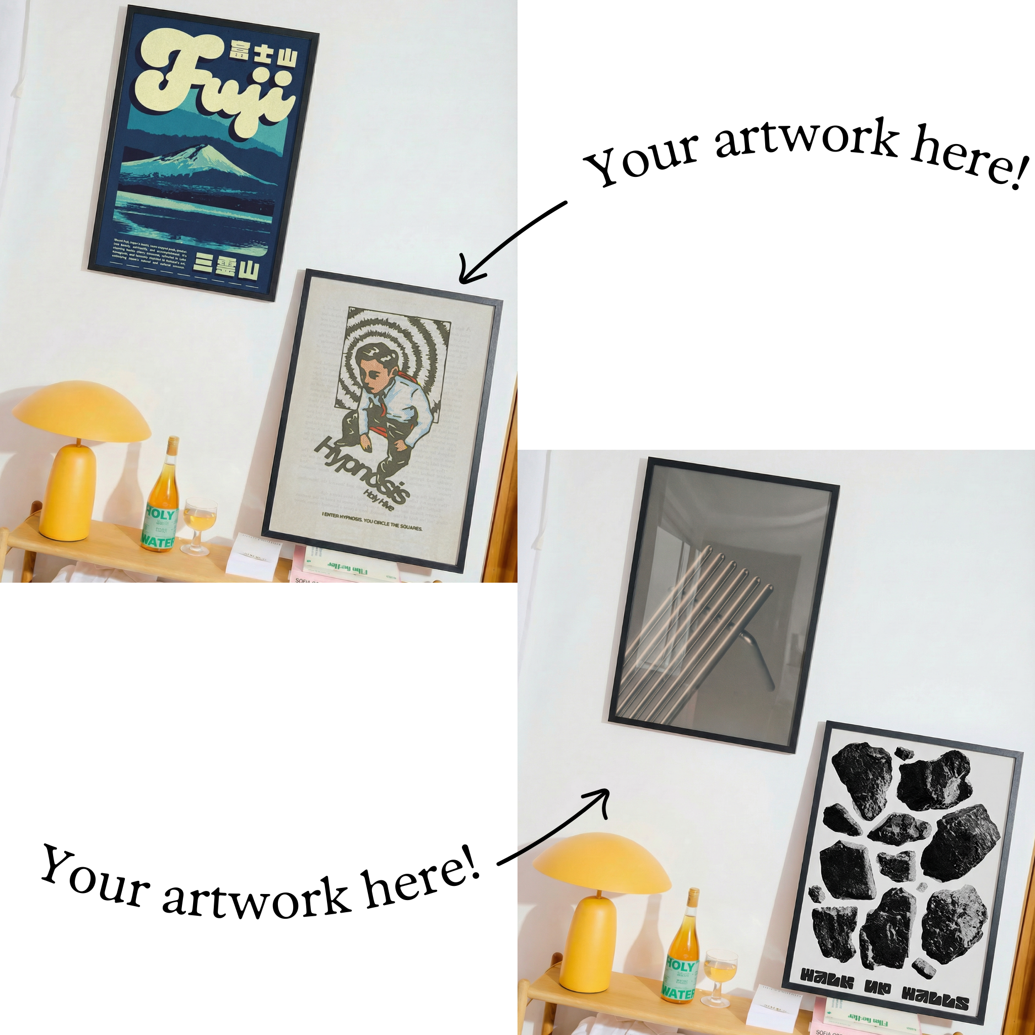 High quality wooden frames are available for A3, A2, and A1 prints. One click upgrade.